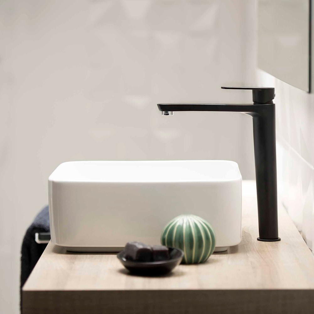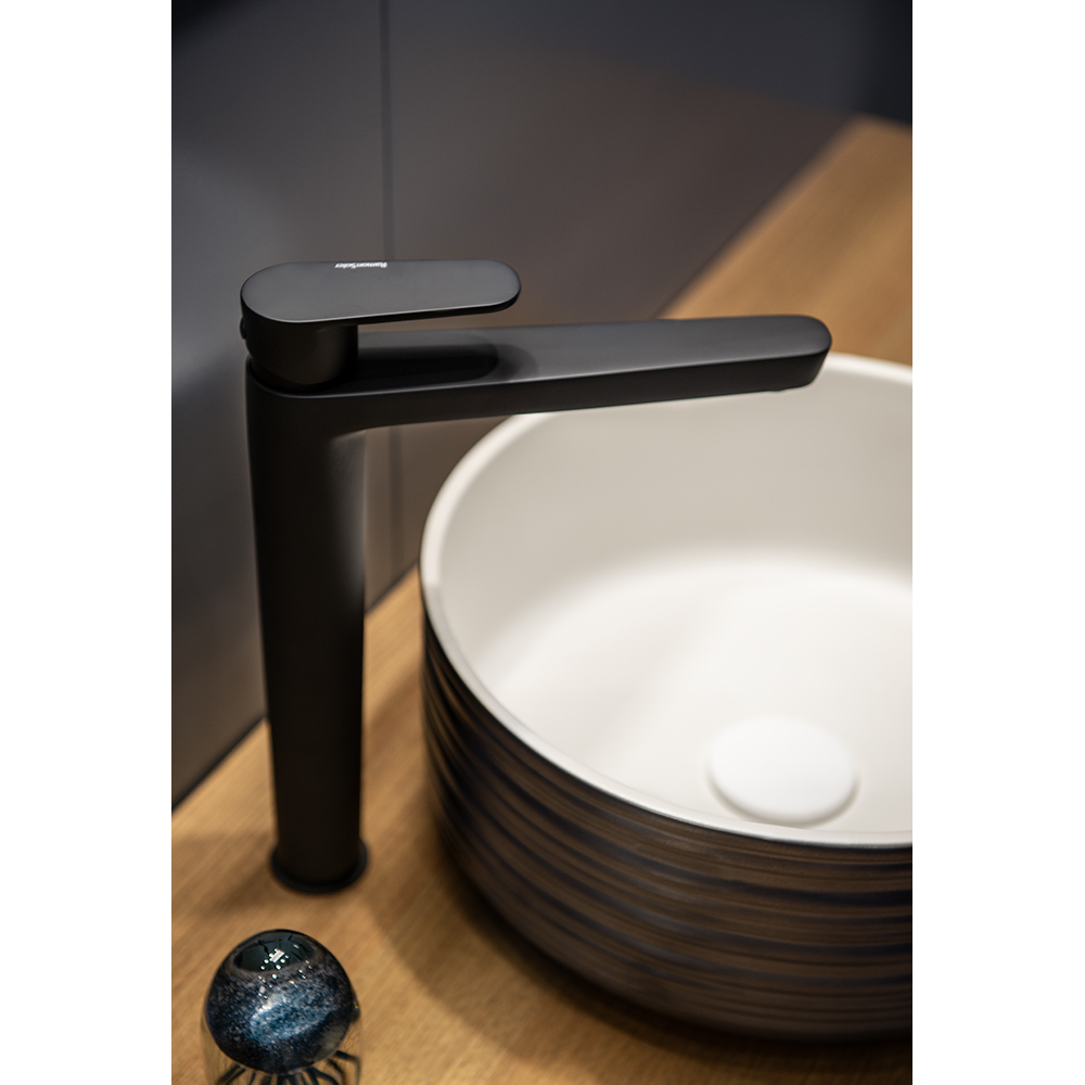 Mitigeur de lavabo de dimensions XL, revêtu d’une finition noir mat résistante grâce à son traitement PVD de haute qualité. Intégrant le système S2 pour une économie d’eau de 50%, un limiteur de température et un système anticorrosion breveté.